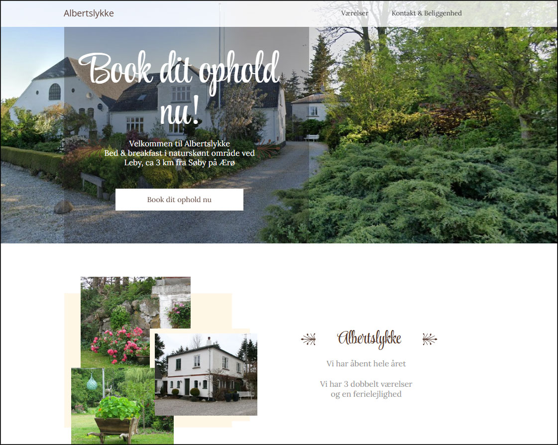 Siden er udviklet i WordPress for bed and breakfast stedet "Albertslykke" på øen Ærø