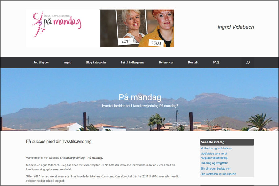 Siden er udviklet i WordPress for livsstilsvejleder "Inger Videbech"